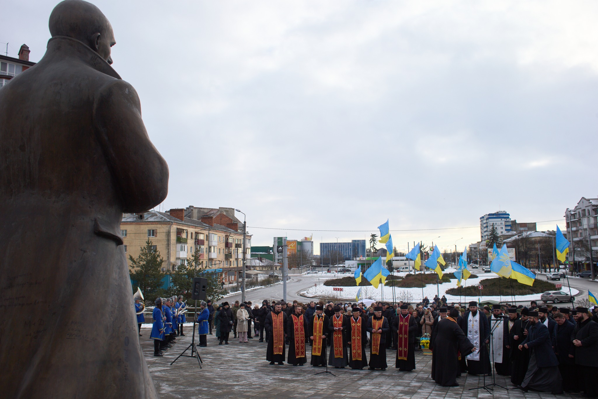 Віче розпочалося із виконання Державного гімну України, після чого духівники відслужили панахиду за Степаном Бандерою та загиблими у російсько-українській війні бійцями.